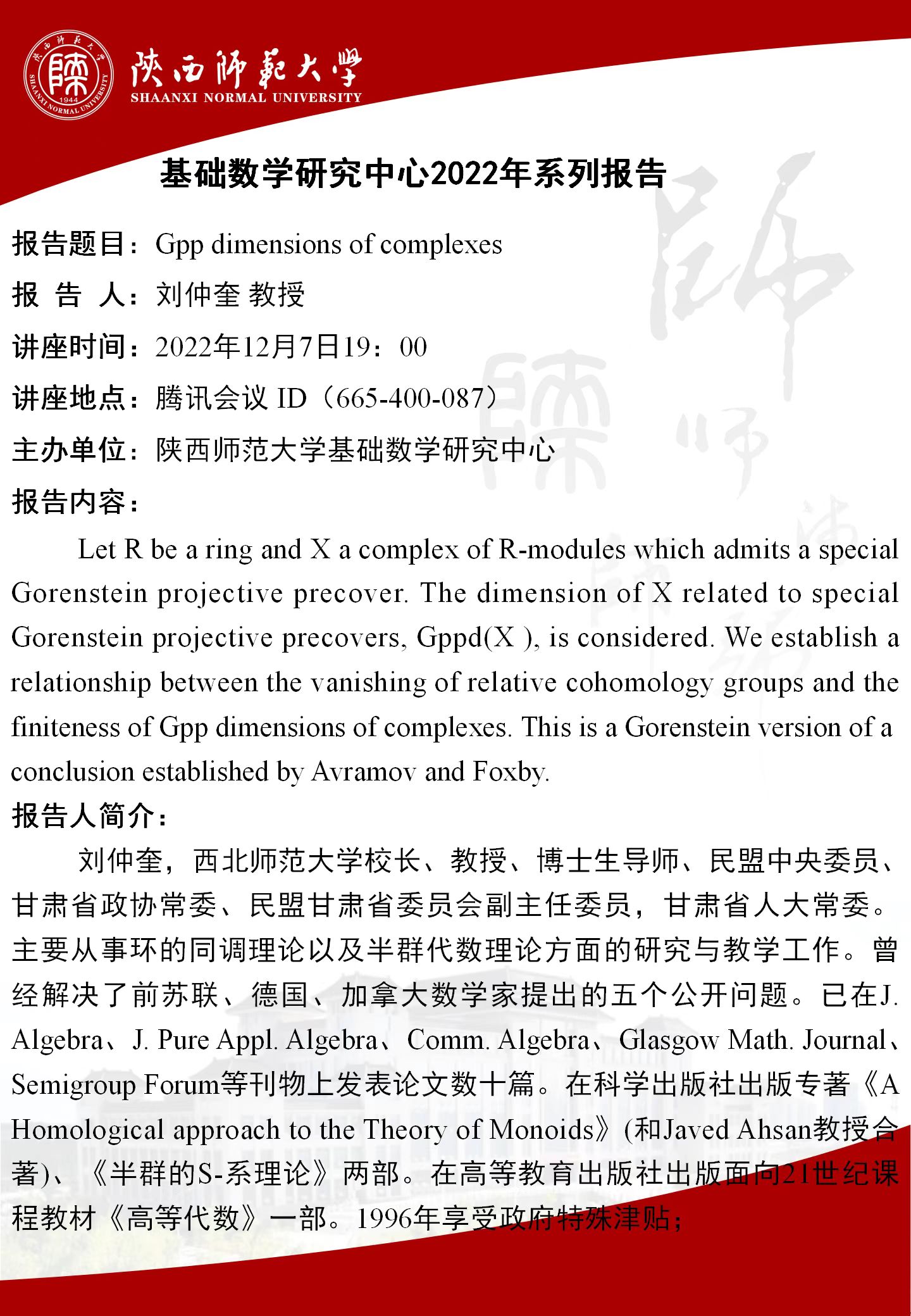 【学术活动月系列三十三】Gpp dimensions of complexes