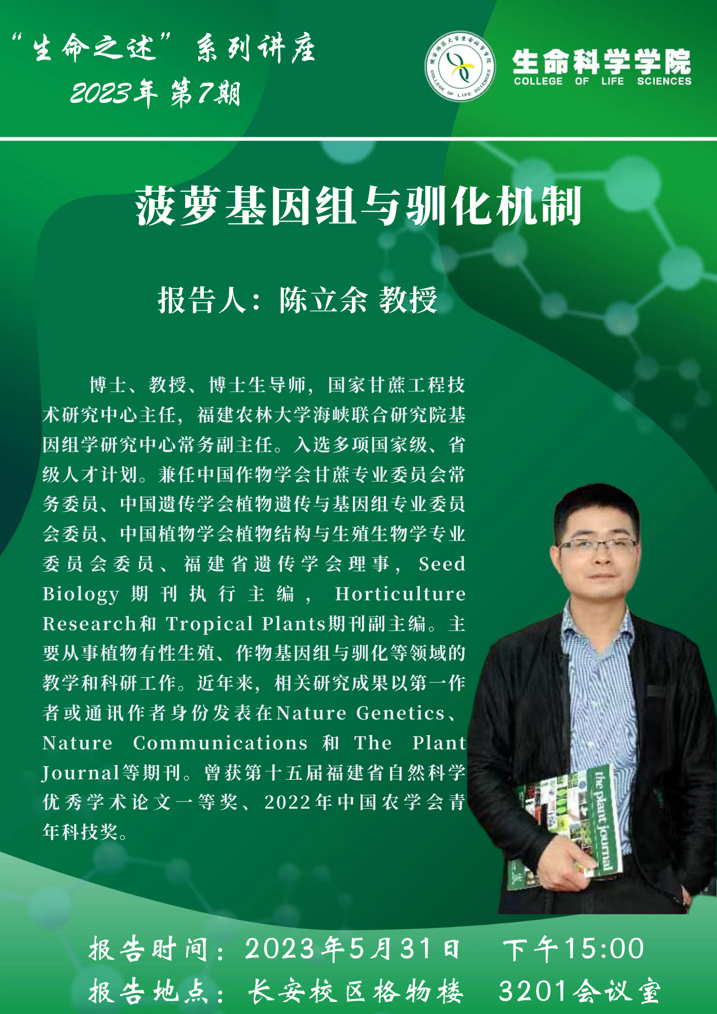 “生命之述”系列讲座--菠萝基因组与驯化机制