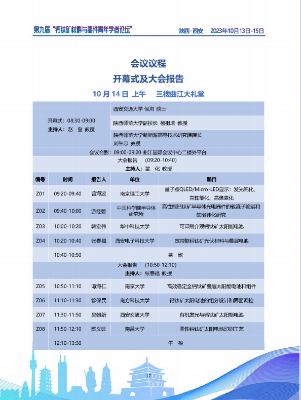 第九届“钙钛矿材料与器件青年学者论坛