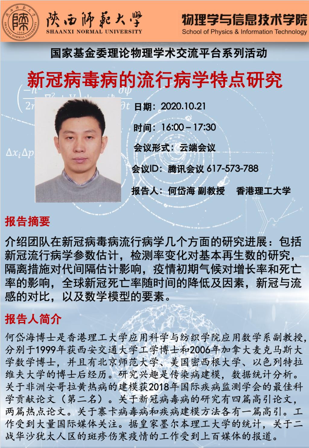 国家基金委理论物理学术交流平台系列活动:新冠病毒病的流行病学特点研究