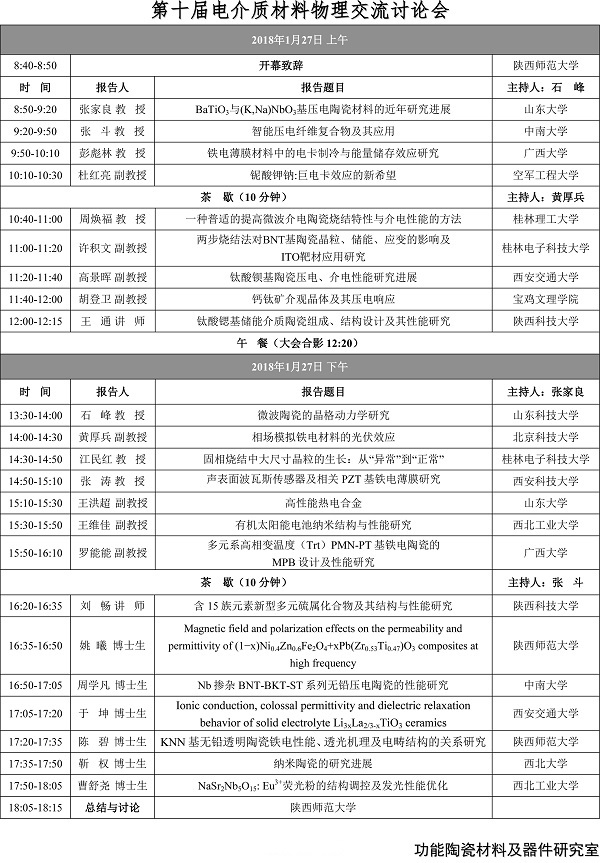 活动类别:第十届电介质材料物理交流讨论会