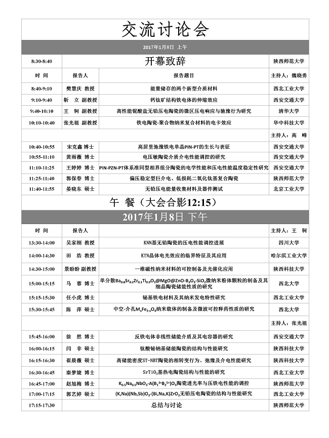 活动类别:第八届电介质材料物理交流讨论会