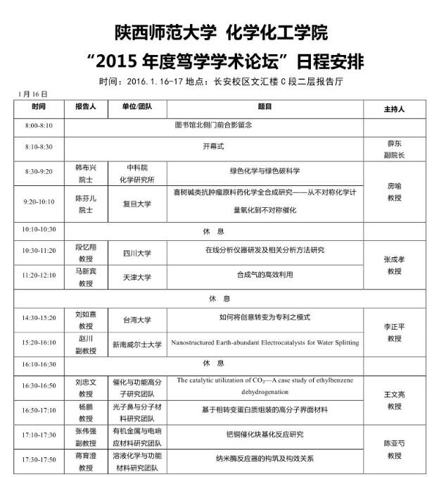 活动类别:2015 年度化学化工学院笃学学术论坛