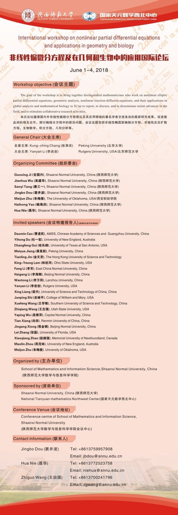 非线性偏微分方程及在几何和生物中的应用国际论坛
