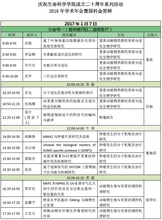 活动类别:庆祝生命科学学院成立二十周年系列活动-2016年学术年会暨国科金答辩