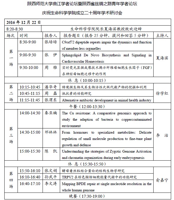 活动类别:德赢AC米兰中国官方网站曲江学者论坛暨陕西省丝绸之路青年学者论坛/庆祝生命科学学院成立二十周年学术研讨会