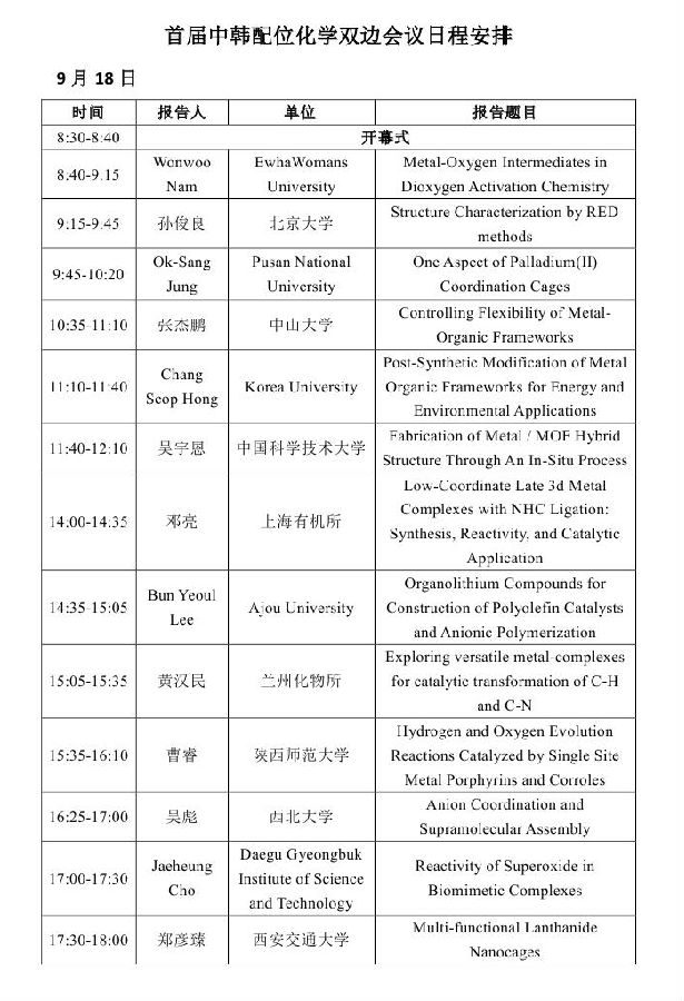 讲座题目:2015 中韩配位化学双边研讨会
