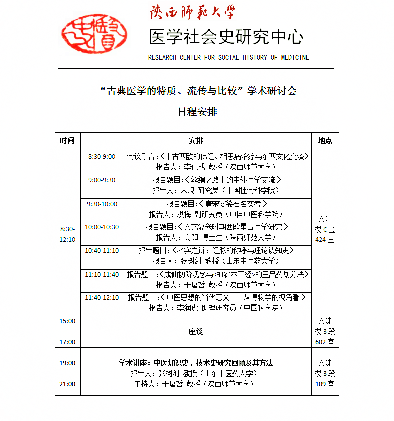 “古典医学的特质、流传与比较”学术研讨会