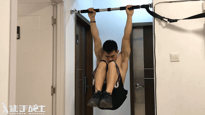 怎么办?——让臀部前移。我的臀部在最高点有一个前移的趋势,这就代表着,我的腹肌卷曲的程度更大了,刺激自然也就更大。当然,你也可以理解为:把膝盖抬得更高。不管做什么举腿的动作,这个方法都非常有效。如果你的力量和背阔肌力量足够,也可以直接尝试“高举腿”,鞋子触碰到单杠。这一步不会很难,一点点练起来就好了。不把腿完全放到垂直,就是让腹肌全程保持紧绷的小诀窍。