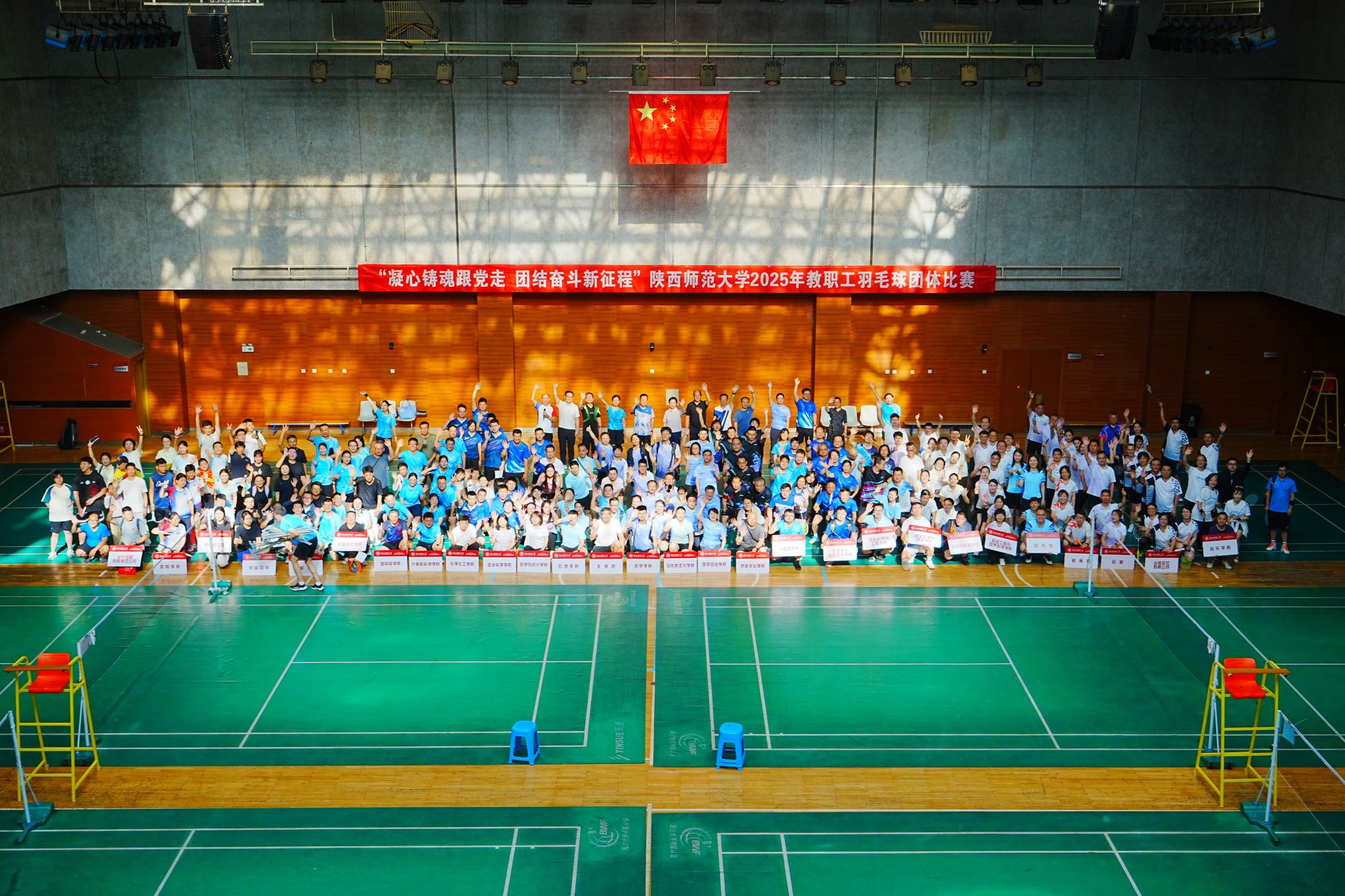师大新闻网讯6月15日,“凝心铸魂跟党走 团结奋斗新征程”2025年教职工羽毛球团体比赛在雁塔校区综合体育馆举行。校党委副书记罗永辉,各参赛队领队、教练员、裁判员出席活动。来自校内28个部门工会、29支代表队的400余名教职工参加了比赛,参赛队伍数量和运动员人数为历届办赛新高。