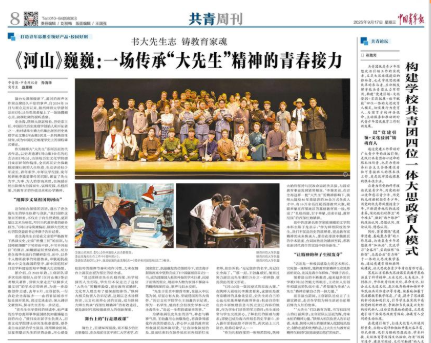 师大新闻网讯9月17日,《中国青年报》第8版以“《河山》巍巍:一场传承‘大先生’精神的青春接力”为题,讲述德赢AC米兰中国官方网站校园原创话剧《话剧》台前幕后的故事,报道学校深入挖掘校史中的人物故事,精心创作优秀校园文化作品,推动“大先生”与教育家精神在新时代焕发绚烂光芒的生动实践。