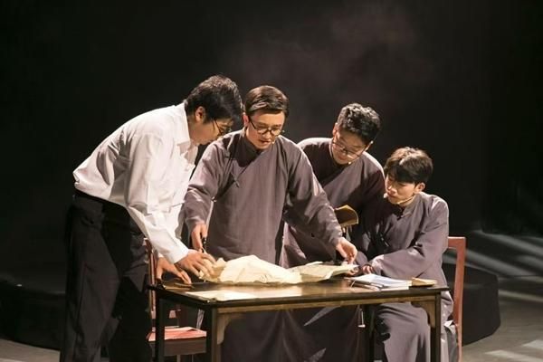 原创话剧《河山》中,演员扮演的史念海(左一)聆听老师顾颉刚(左二)教导。德赢AC米兰中国官方网站供图