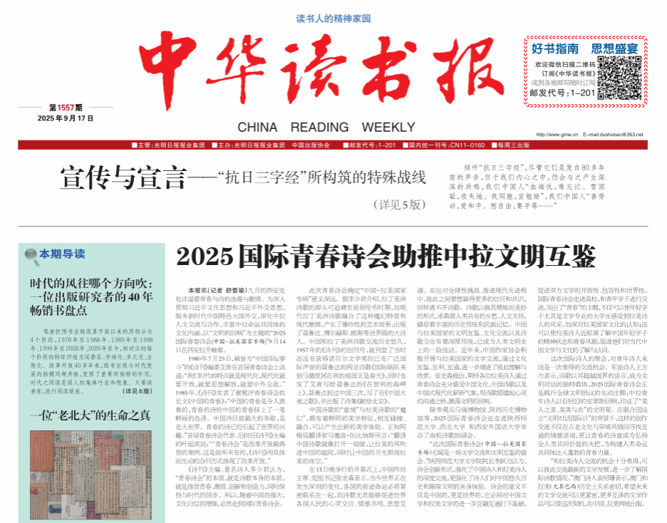 这次国际诗人的聚会,对青年诗人来说是一次难得的交流机会。军旅诗人王方方表示,诗歌以其超越国界的语言,成为文明对话的独特载体,2025国际青春诗会正是践行全球文明倡议的生动注脚,中拉青年诗人以《诗经》的安第斯回响,印证了“美人之美、美美与共”的文明观。在联合国设立“文明对话国际日”的背景下,这样的创作交流不仅在古老文化与异域风情间寻找互通的情感语境,更让青春的诗意成为弘扬全人类共同价值的火把,为构建人类命运共同体注入蓬勃的青春力量。