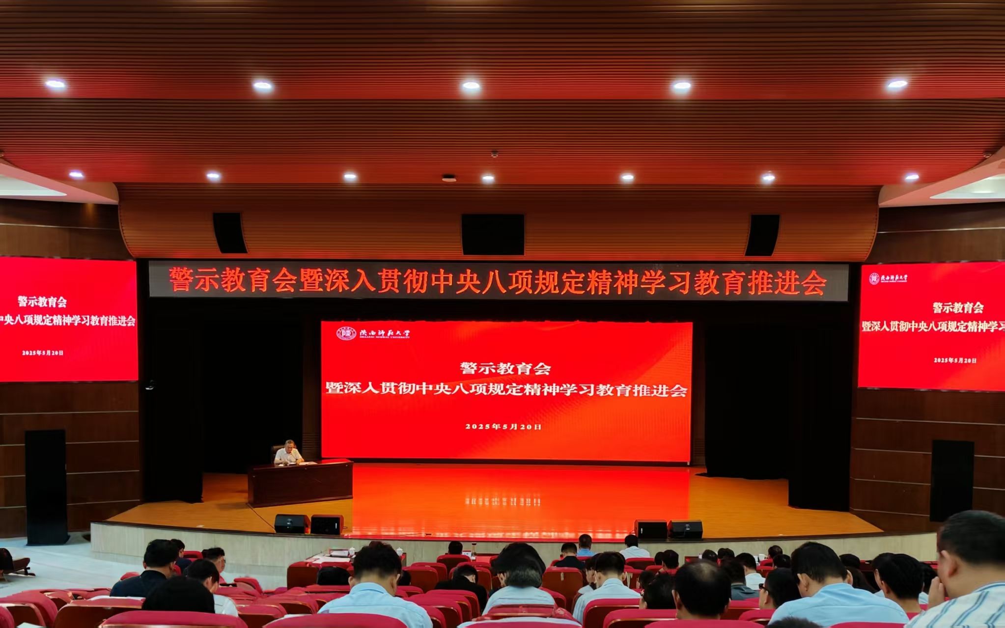 师大新闻网讯 5月20日下午,德赢官网在长安校区新勇学生活动中心召开警示教育会暨深入贯彻中央八项规定精神学习教育推进会。校党委书记李晓兵讲话,党委副书记、纪委书记石峰作学校学习教育情况通报和近期工作安排,与会人员集体观看警示教育片。学校领导班子成员、党委常委、校长助理、全体处级干部参会,会议由李晓兵主持。