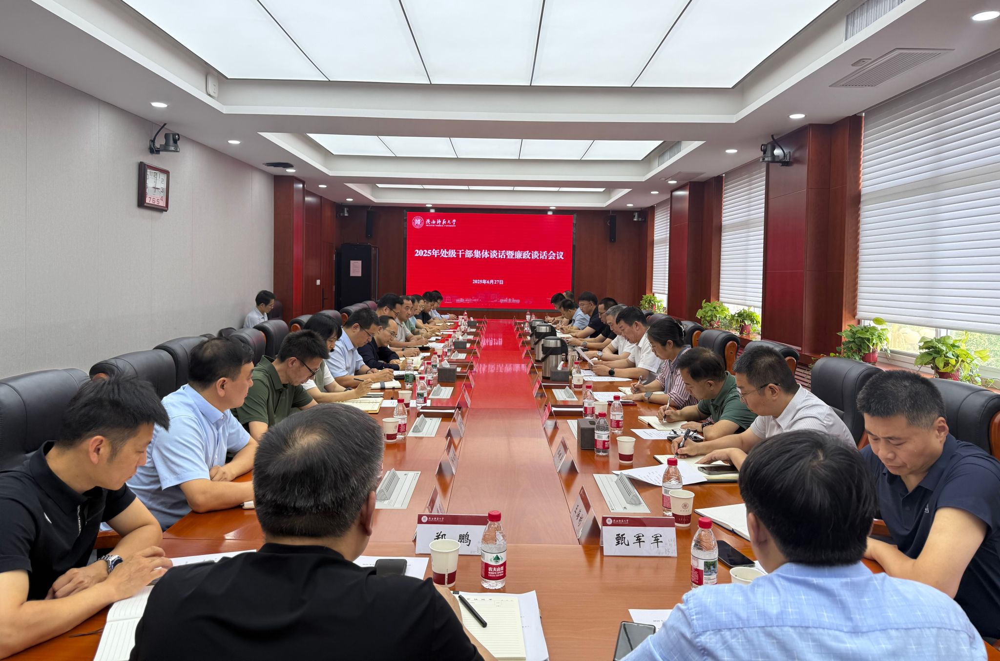 师大新闻网讯为进一步加强干部队伍建设,强化干部纪律规矩意识,6月27日,学校党委召开2025年上半年调整提任正处级干部集体谈话暨廉政谈话工作会议。校党委书记李晓兵,校长游旭群,校党委副书记、纪委书记石峰以及2025年以来调整提任的正处级干部参加会议。会议由游旭群主持。