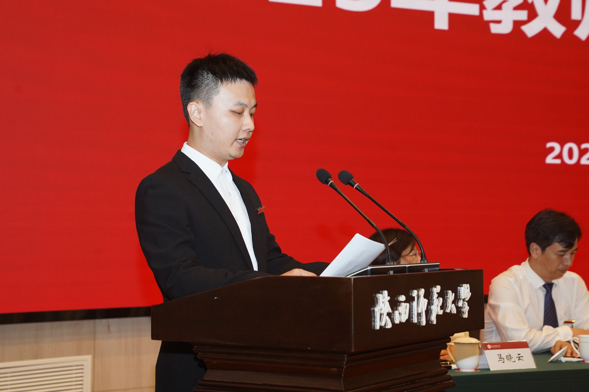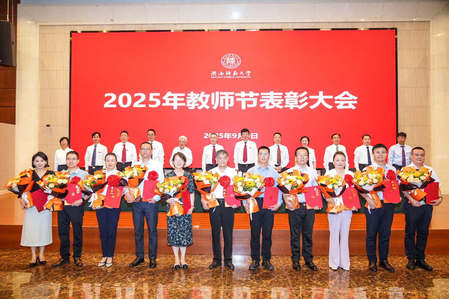 李晓兵表示,高水平教师队伍是学校实现高质量发展最重要的基础和底气,是办学兴校的根基所在。他希望全体教职员工坚持“面向世界、胸怀国家、心系人民、扎根西部、服务陕西”的发展理念,传承弘扬学校“西部红烛两代师表”精神,以“十年磨一剑”的坚定信心和顽强意志,肩负起对党和国家、对民族和人民、对师大发展的使命担当,只争朝夕、埋头苦干,勇毅前行、开拓创新,为推进学校事业加速发展高质量发展努力奋斗,为建设教育强国、办好人民满意的教育再立新功,为实现强国建设、民族复兴伟业作出新的更大贡献。