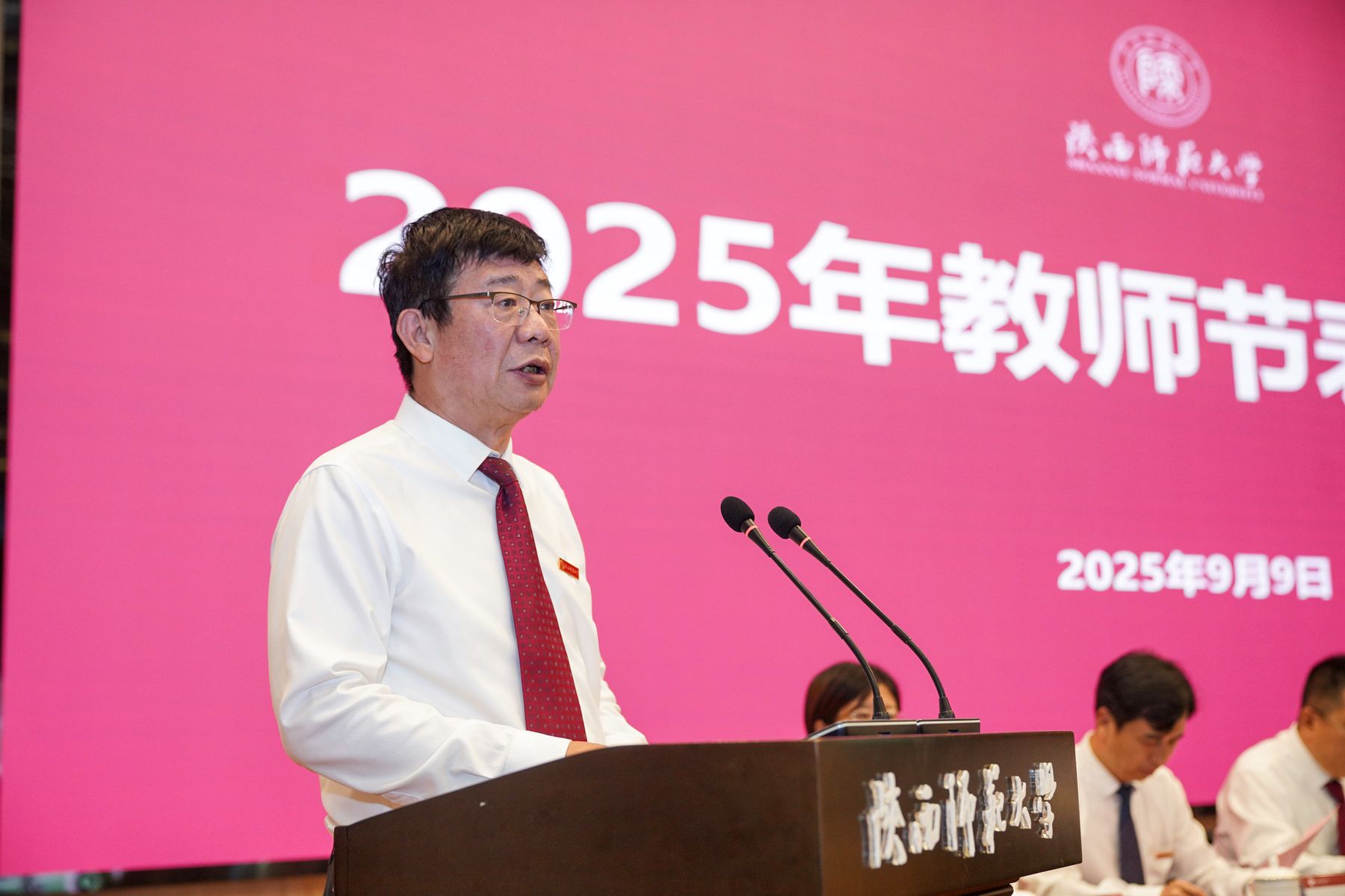 师大新闻网讯三尺讲台铸师魂,满园桃李尽芬芳。在我国第41个教师节即将到来之际,9月9日下午,德赢官网在长安校区新勇学生活动中心举行2025年教师节表彰大会。校党委书记李晓兵,校长、党委副书记游旭群等党政领导,党委常委、校长助理出席大会。受表彰的先进集体和个人代表,部分党政职能部门主要负责人,2025年新入职教师代表、离退休教师代表、学生代表等参加大会。大会由游旭群主持。