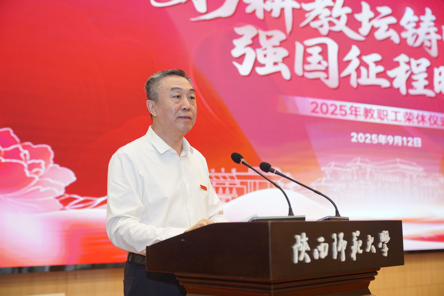 师大新闻网讯9月12日上午,德赢官网在长安校区新勇学生活动中心举行2025年度教职工荣休仪式。校党委书记李晓兵,党委副书记卢胜利、罗永辉,副校长王云博,荣休教职工代表,教师代表,学生代表,相关教学科研单位和职能部门,直属附属单位的负责同志参加了仪式。仪式由罗永辉主持。