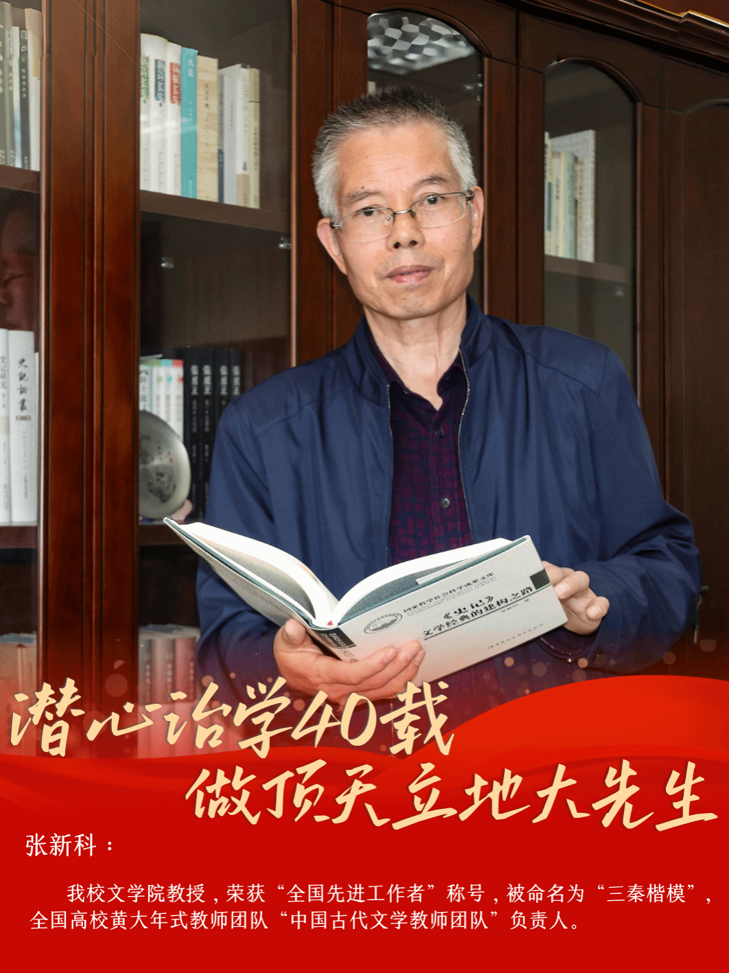 “大先生,就是要有大胸怀、大格局、大境界、大学问、大担当。”张新科探源典籍真义,铸就文化新章,倾尽心血以文育人、以文化人,将言传身教的人文教化,融入传道授业解惑的教育人生。